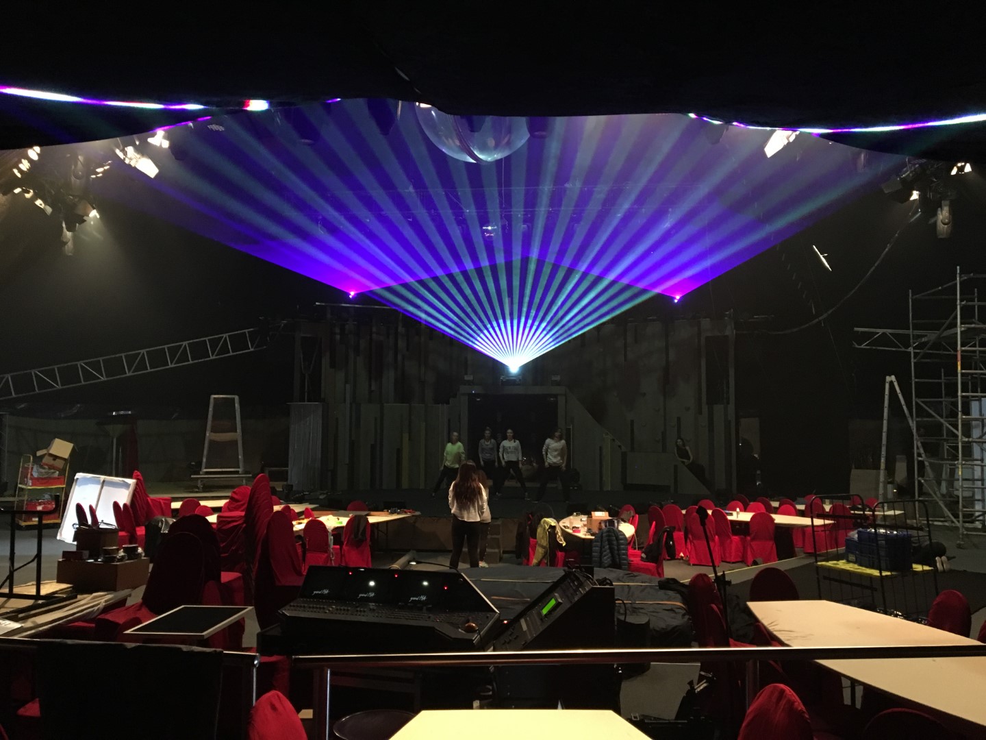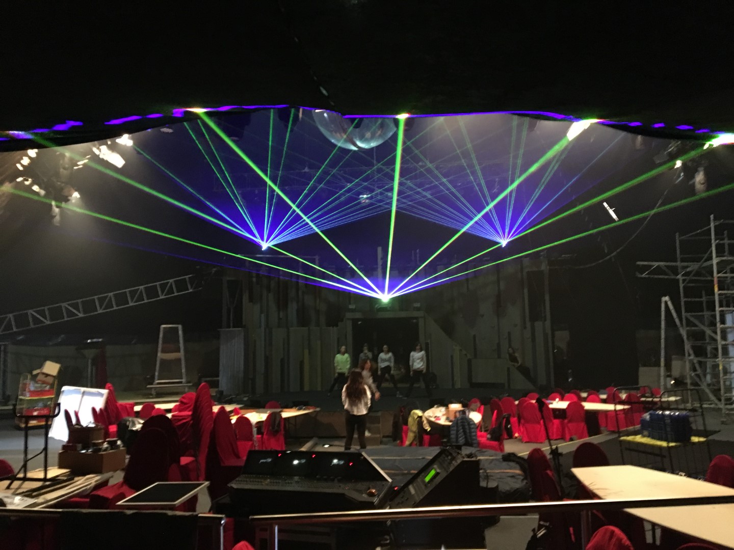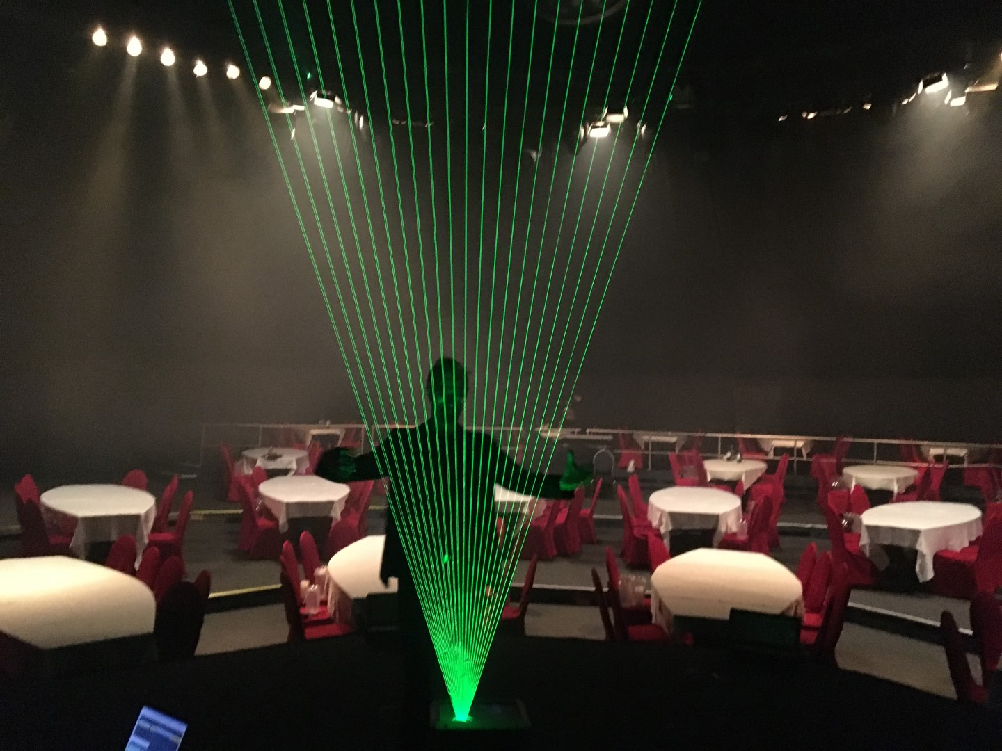 Für die Dinnershow von Sarrasani sind wir mit der Lasershow beauftragt worden. Für die Spielzeit 2017/18 wurden wir beauftragt ein Lasersystem auf den Boden der Treppe zu installieren mit dem man die Aufführung der Laserman Show von Sarrasani projizieren konnte.